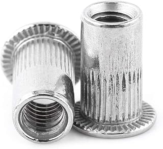 20Stk M6 Nietmuttern Sortiment, Blindnietmuttern Einsätze Einnietmuttern Sortiment Set, 1/4" UNC-Nietmuttern aus rostfreiem Stahl Flachkopfniet-Gewindeeinsatzmutter-Kit Rändel-Blindnietmutter-Einsatz
