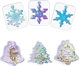 6 Stück Weihnachts Gießformen Epoxidharz Formen Weihnachtsharzform DIY Elch Harzform Schneeflocke Silikon Gießformen, Anhängergießform mit Aufhängelöchern, für Epoxidharz UV-Harz Zementlehm