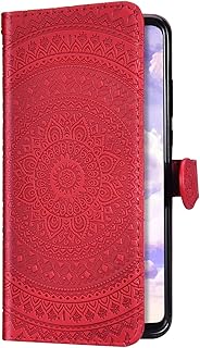 Uposao Kompatibel mit Huawei P20 Lite Hülle Leder Schutzhülle Mandala Blumen Motiv Muster Brieftasche Handyhülle Klapphülle Handytasche Flip Lederhülle Leder Tasche Etui Case,Rot