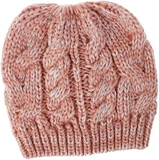 Pferdeschwanz Beanie Mütze Winter Strickmütze Chunky Cable Cap Weiche Stretch Beanie Mütze für Frauen Mädchen, Pink
