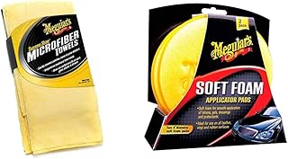 Meguiar's X2020EU Supreme Shine Mikrofasertuch, 3er Pack & X3070 Soft Foam Applicator Pads Auftragsschwamm, 2-er Pack