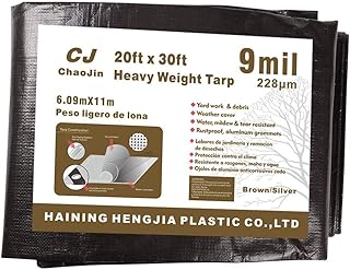 ChaoJin Waterproof Tarps Heavy Duty 9 Mil Thick Rain Covers Drop Cloths Camping Tents Colored Tarps- Perfect for Shelter, Shade 20'x30' Brown/Silver