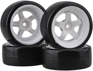 SZDSHL Durable 5 Speichen Weiß Felge Felgen & Reifen Reifen White + Black für RC 1:10 Drift Car & On Road Car 4er Pack